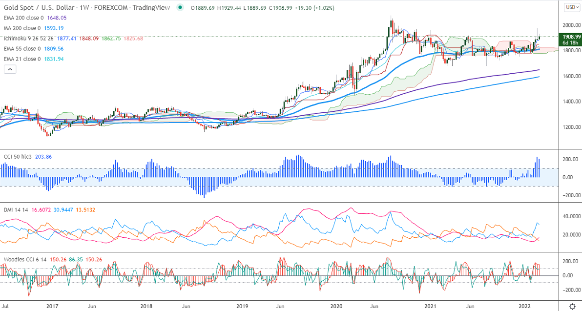 Gold was one of the best performers this month and surged nearly $200 on geopolitical tension. The Russian invasion of Ukraine has increased the demand for safe-haven assets like gold. According to Ukraine Interior Ministry,352 Ukrainian civilians, including 14 children killed by the Russian military The jump in the US dollar index is putting pressure on yellow metal at higher levels. Gold hits a high of $1974 and is currently trading around $1906.