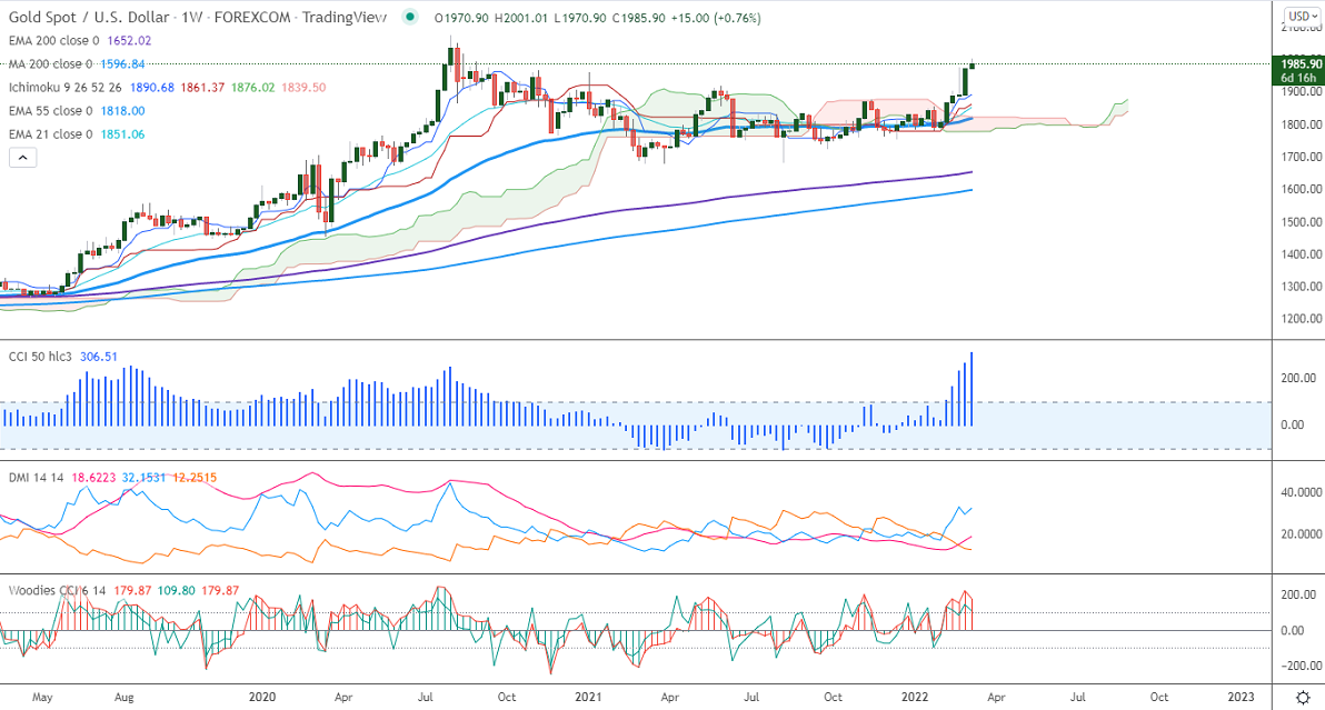 Gold was one of the best performers and hits a 17-month high as the Ukraine crisis intensifies. The war between Russia and Ukraine continued for the 12th day and almost 1.5 million people evacuated from Ukraine. The failure of the second round of talks has increased demand for safe-haven assets. Gold hits an intraday high of $2001 and is currently trading around $1989.70.