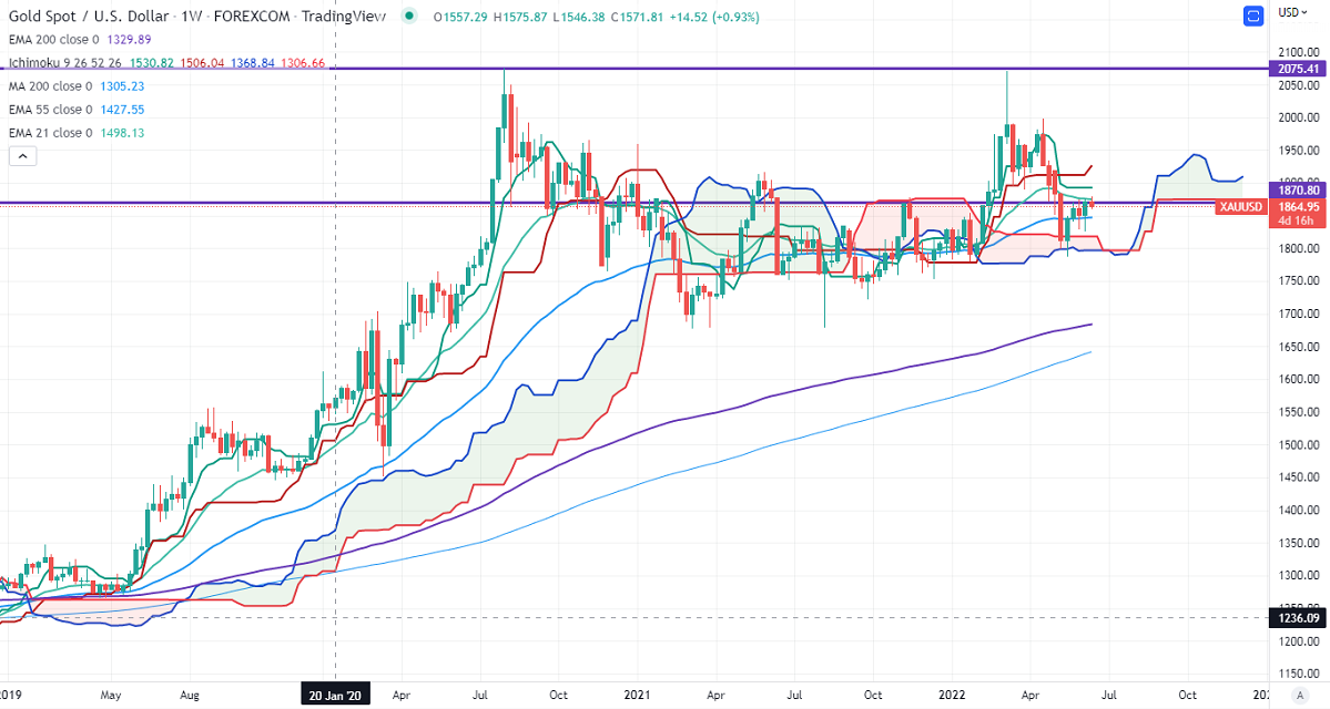Gold price lost its shine on upbeat US inflation data. It came at 8.6% in May compared to a forecast of 8.3%, the largest YOY increase in 40 years. US dollar and treasury yields surged sharply after the data. According to the CME Fed watch tool, the probability of a 75 bpbs rate hike in Jul increased to 52.7% from 14.6 % a week ago. It hits an intraday low of $1860 and is currently trading around $1863.88.