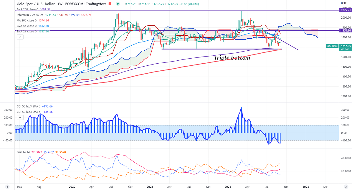 Gold price recovered above $1700 despite the strong US dollar. It hits a fresh 20-year high on upbeat US Non-farm roll data. US economy has added 315000 jobs in Aug compared to a forecast of 295K. The rate of unemployment rose to 3.7% vs an estimated 3.5%. Average hourly earnings came at 0.30% below the consensus of 0.40%.