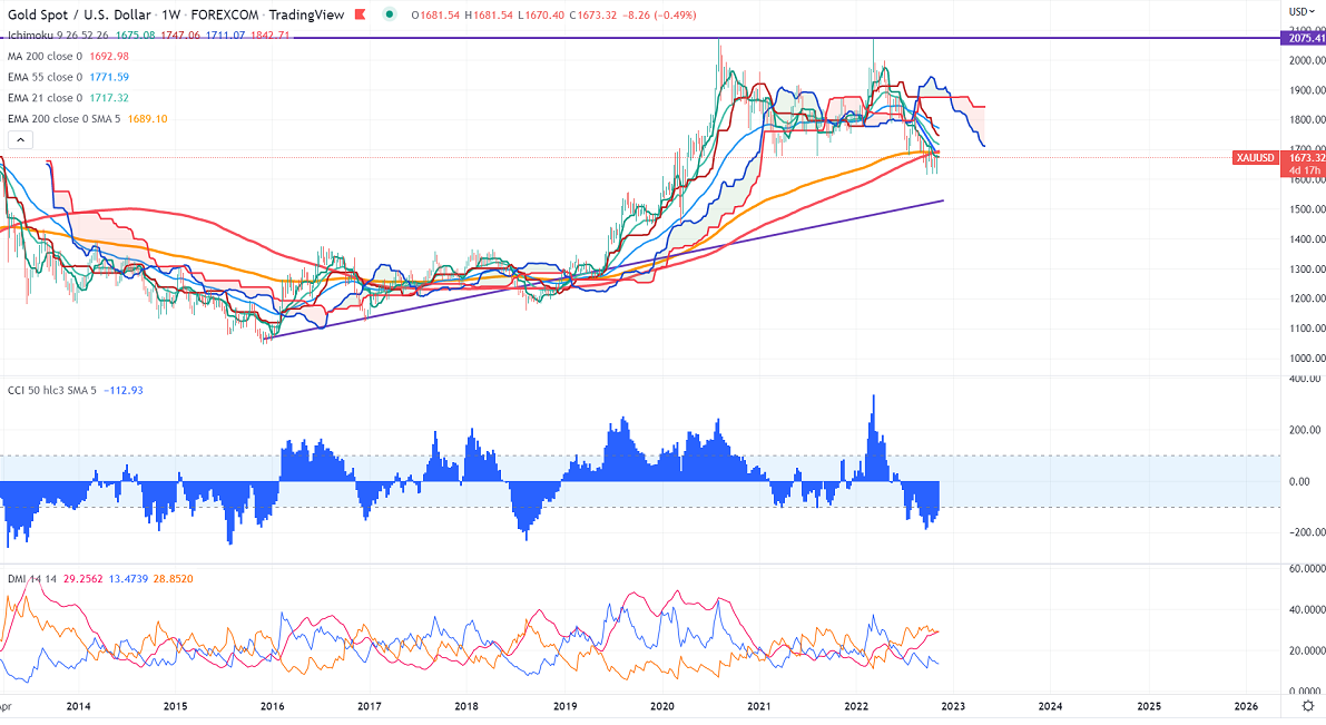 Gold surged declined sharply after US NFP. The US economy added 261000 jobs in Oct, above the estimate of 197K. But the jump in the unemployment rate has dragged the US dollar index down. It has lost more than 150 pips after the data. The weak US ISM manufacturing, services, and US NFP are expected to decrease the chance of further aggressive rate hikes. The yellow metal hits a high of $1682.13 and is currently trading around $1672.98.