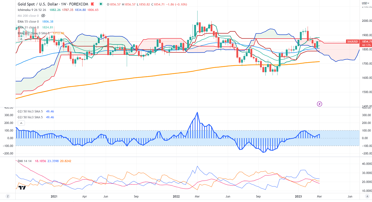 Gold prices recovered more than $20 as the US treasury yield retreated. Gold hits a high of $1857 and is currently trading around $1855.58.