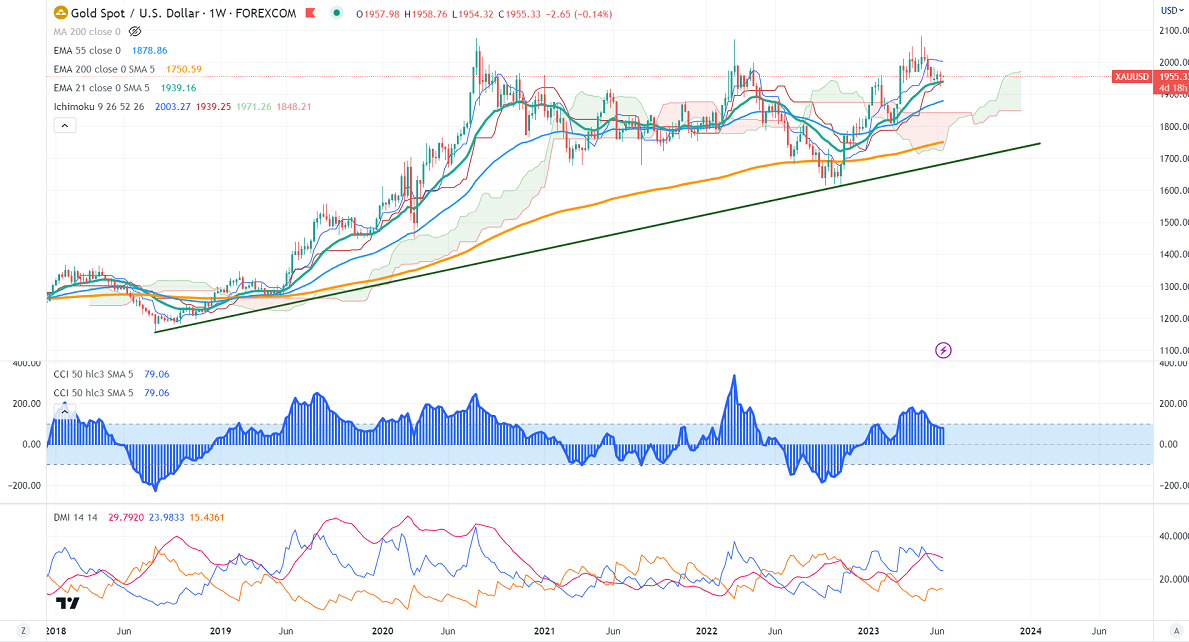 Gold prices recovered sharply on Friday due to mixed US economic data. It hits a high of $1967.95 and is currently trading around $1955.59.