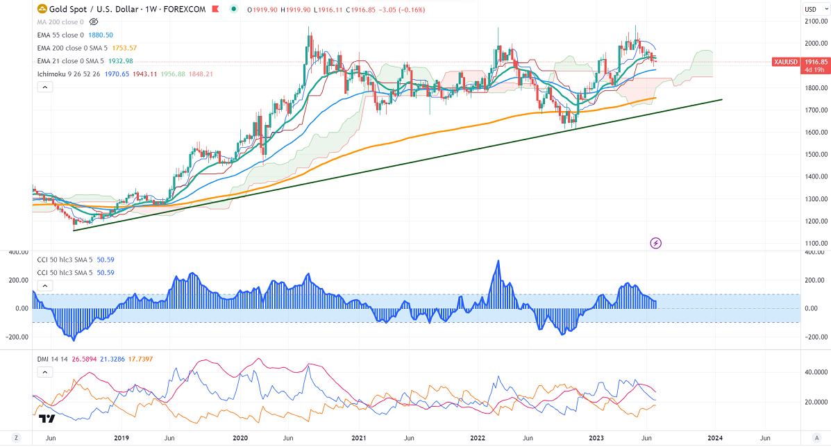 Gold prices showed a minor pullback after weak US PCE data. Headline US PCE index rose 0.10% m/m, below expectations of 0.50%. Core PCE came at 0.30% m/m, in line with market expectations. It hits a high of $1922 yesterday and currently trading around $1917.