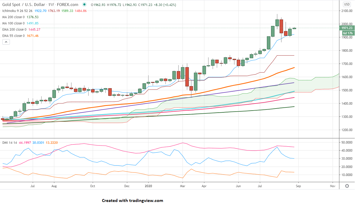 Gold recovered the previous week after a dovish speech by Fed chairman Powell and an increasing number of coronavirus cases across the world. The number of people who filed for unemployment benefits has risen to 1 million for the week ending Aug22 slightly down from 1.104 million in the previous week. Markets eye US ISM Manufacturing index and Nonfarm payroll data which is to be released this week for further direction. The US 10-year yield declined slightly after hitting a high of 0.785% and real yield is at -1.03% from -0.99% yesterday.