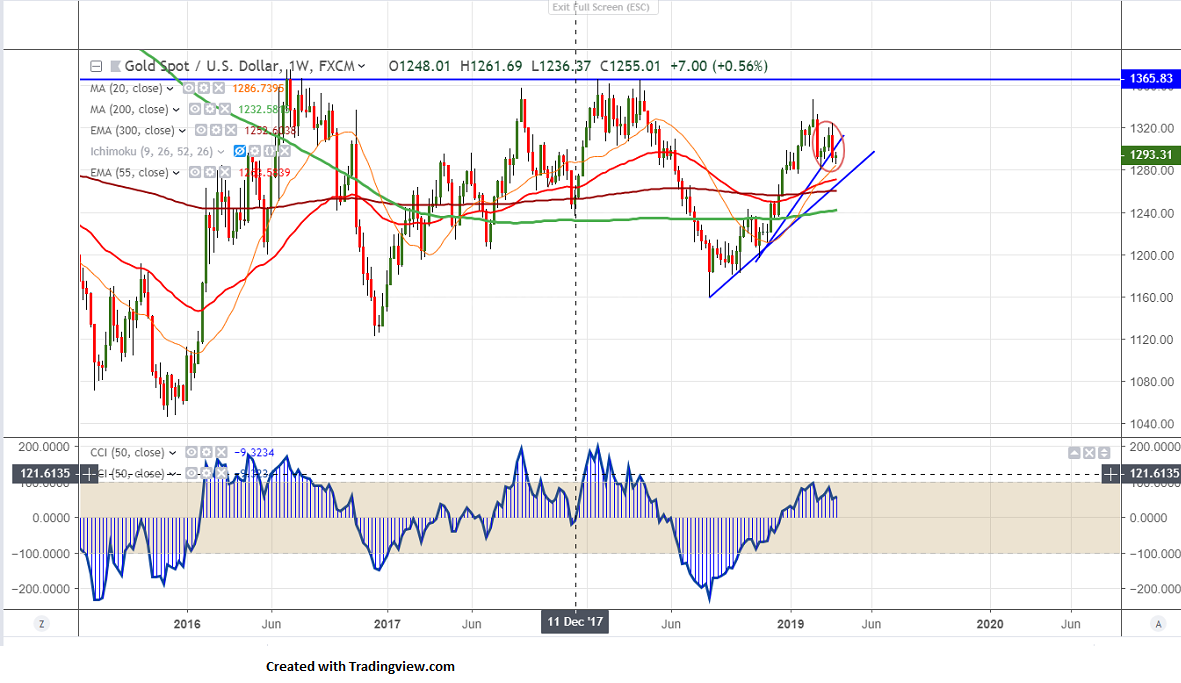 Gold has halted its 6 days of downtrend and shown a minor jump of nearly $8 on account of slight weakness in US dollar.It has made temporary top around $1346 and lost nearly $60. It hits low of $1285.36 and is currently trading around $1293.30. Gold was one the best performer and jumped more than $120 from Dec 2018 low of $1220 on account of dovish Fed and global uncertainty.