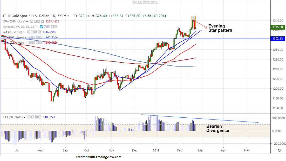 The near term resistance is around $1330 and any violation above will take the yellow metal till $1335/$1340. It should break above $1347 for further bullishness.