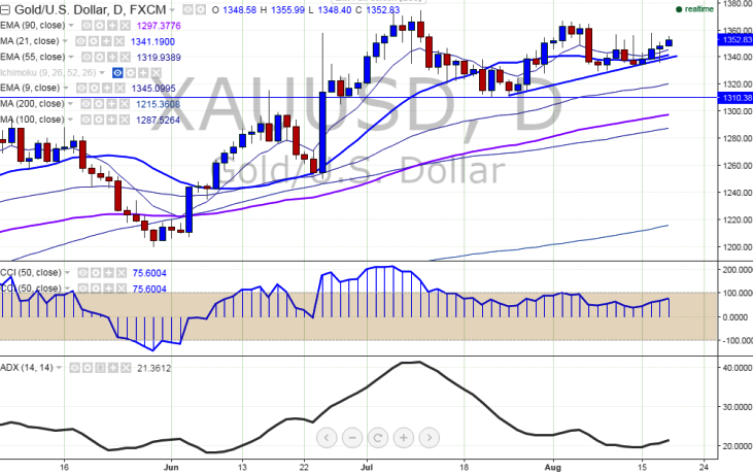 - On the lower side, support stands at $1338 (21 day MA) and break below will drag the commodity down till $1330/$1315 (55 day EMA)/$1295.