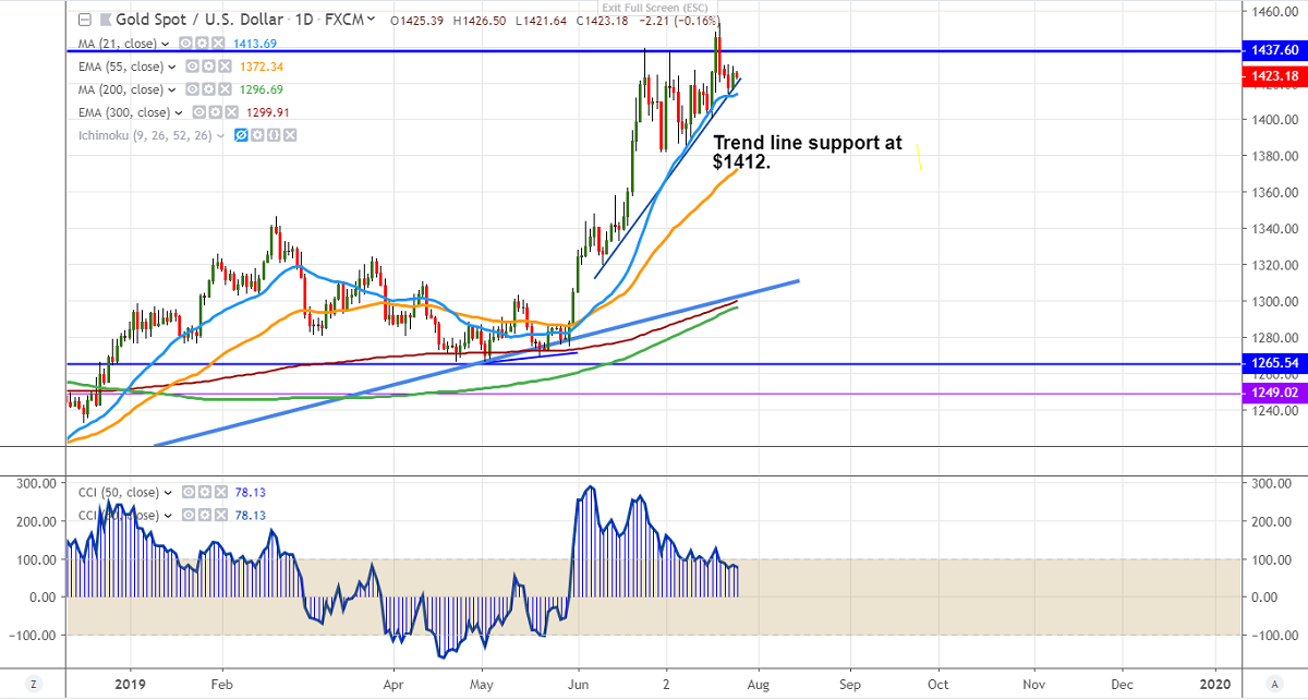 It is good to buy on dips around $1412 with SL around $1400 for the TP of $1450.