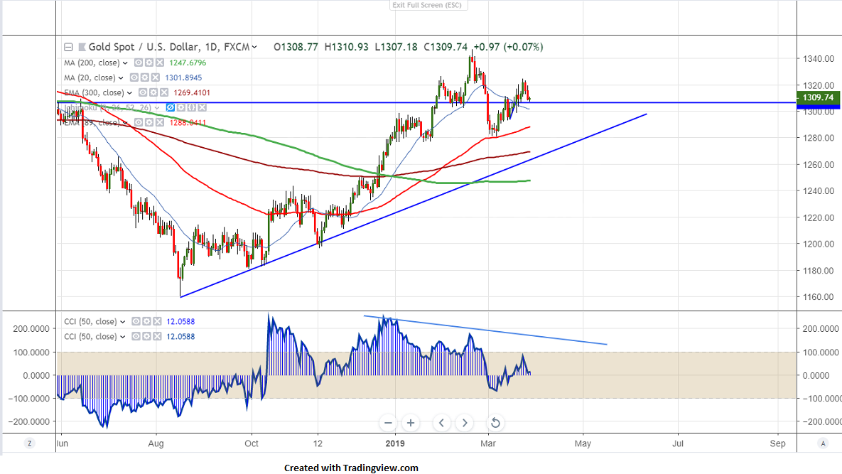 Gold was trading lower for past two days and lost more than $15 on account of strength in US dollar.It has made temporary top around $1346 and lost nearly $60. It hits intraday low of $1307 and is currently trading around $1315.61. Gold was one the best performer and jumped more than $120 from Dec 2018 low of $1220 on account of dovish Fed and global uncertainty.