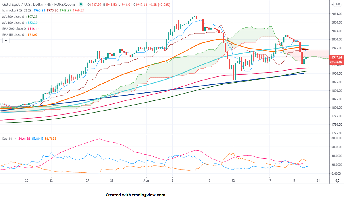 The yellow metal hits a low of $1924 and is currently trading around $1992.