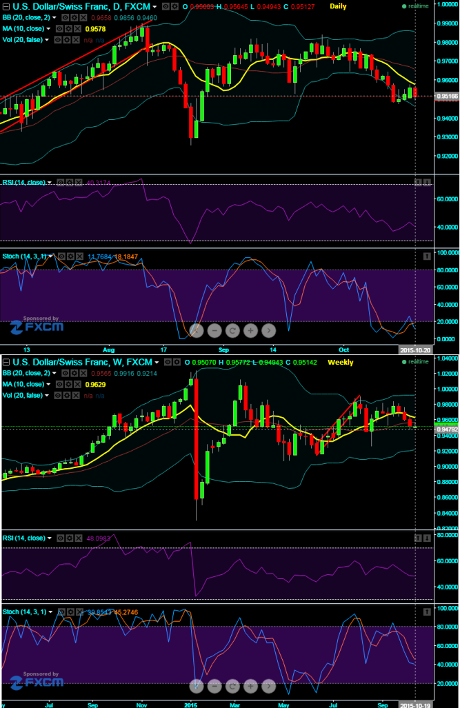 It has been a losing streak for dollar against Swiss franc about one and half months or so. The current prices on weekly chart have fallen below moving average curve, this would signal us that the prevailing bearish trend to prevail for some more weeks.