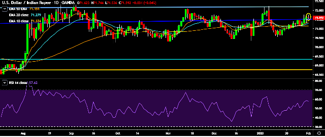 - It made intraday high at 71.74 and low at 71.53 marks.