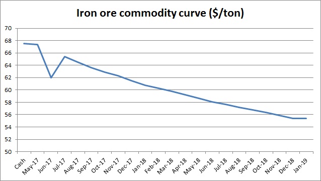 After a short recovery since mid-April when the iron price reached as low as $61 per ton (CME), the most important ingredient for steelmaking suffered another blow in China today. In China’s Dalian Commodity Exchange the iron ore price declined by almost 8 percent to trade at yuan485 per ton or $70.33 per ton. After last year’s stellar performance, the outlook for iron ore is quite grim; the current backwardation in the market is reflecting that.