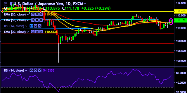 - It made intraday high at 111.13 and low at 110.87 levels.