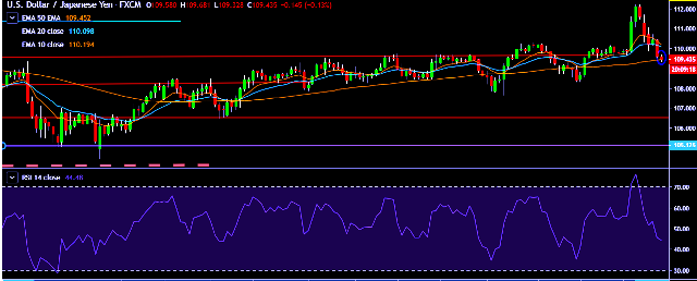- It made intraday high at 109.68 and low at 109.32 levels.