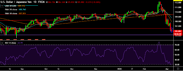 - On the other side, a sustained close below 106.15 will drag the parity down towards key supports around 105.58, 104.00, 103.22 and 101.98 levels respectively.