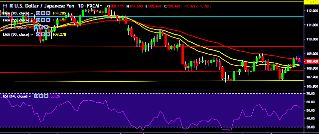 - It made intraday high at 108.69 and low at 108.45 levels.