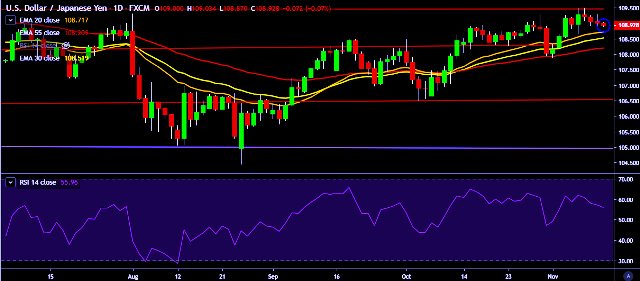 - It made intraday high at 109.03 mark and low at 108.87 levels.
