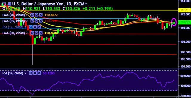 - A daily close above 110.60 will take the parity higher towards key resistances around 111.70, 112.60, 113.98, 114.54 and 115.24 levels respectively.