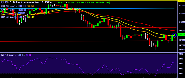 - It made intraday high at 108.58 and low at 108.39 levels.