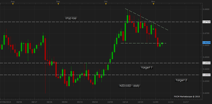 Recent big rally in New Zealand Dollar might be over with Wednesday's wedge break and the pair (NZD/USD) might slide further with speculation over December rate hike from US Federal Reserve.