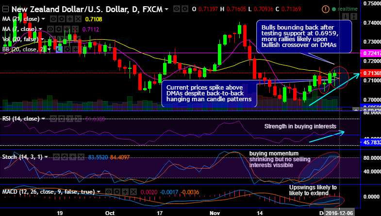 The current prices spike above DMAs despite back-to-back hanging man candle patterns at 0.7088, 0.7139 and now again today’s candle seems like the same pattern at 0.7134 levels.