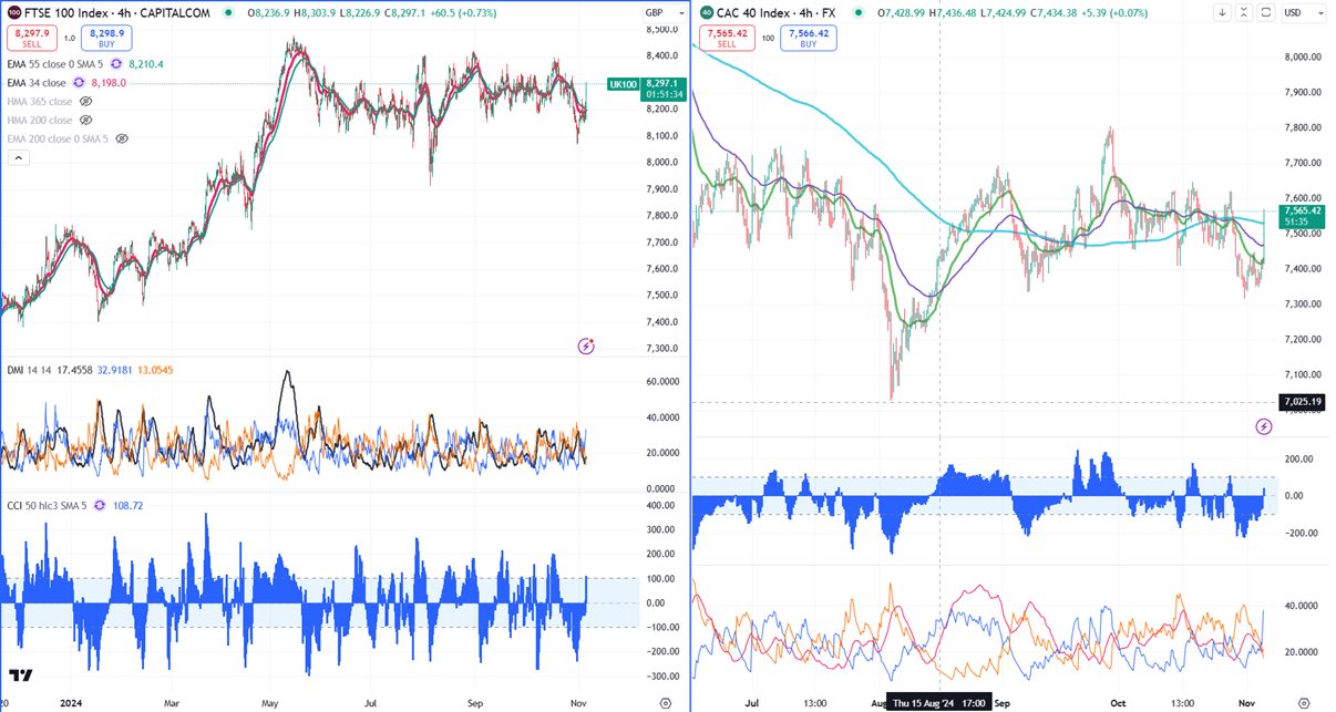 The pair holds above short-term (34 EMA, above 55 EMA) and long-term (200 EMA) in a 4-hour chart.