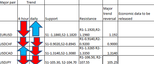 Major Pair levels and Bias summary
