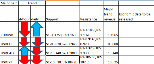 Major pair levels and bias summary