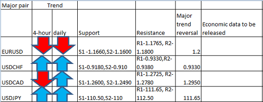 Major pair levels and bias summary