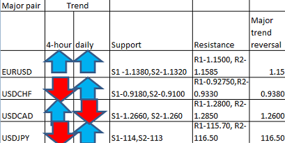 Major pair levels and bias summary