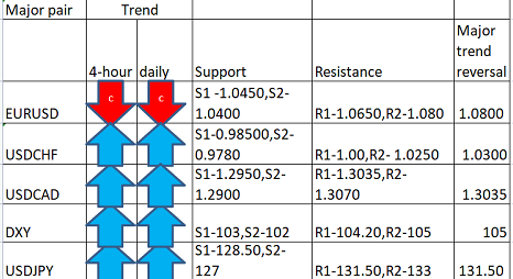 Major pair levels and bias summary