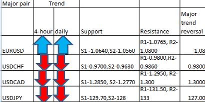 FxWirePro- Major Pair levels and bias summary