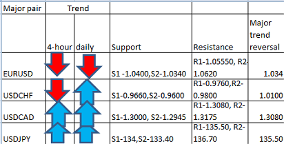 Major pair levels and bias summary