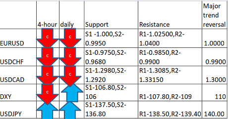 Major pair levels and bias summary