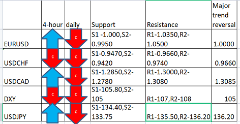 Major pair levels and bias summary