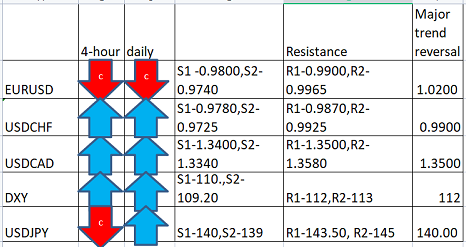 Major pair levels and bias summary