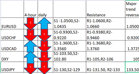 Major pair levels and bias summary