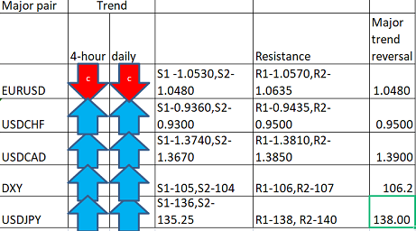 Major pair levels and bias summary