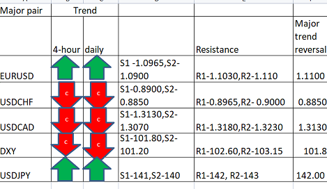 FxWirePro- Major Pair levels and bias summary