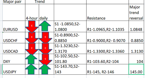 FxWirePro- Major Pair levels and bias summary