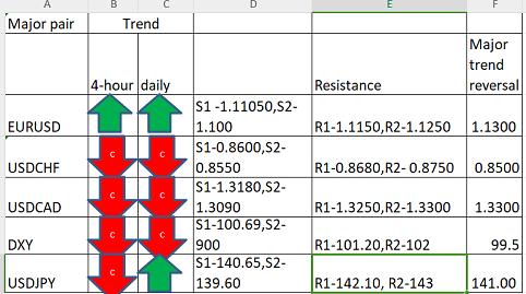 Major pair levels and bias summary