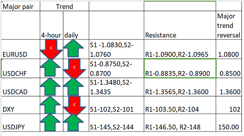 Major pair levels and bias summary