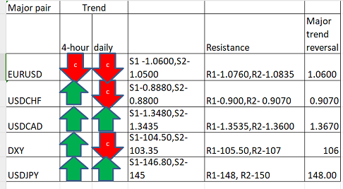 Major pair levels and bias summary