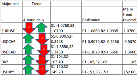 Major pair levels and bias summary