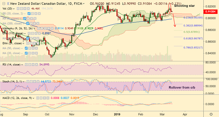 Resistance levels - 0.9108 (200-hour SMA), 0.9132 (5-DMA), 0.9197 (Mar 12 high)