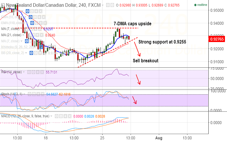 - 7-DMA at 0.9298 is immediate resistance on the upside, break above will see further gains to 0.9340 levels.