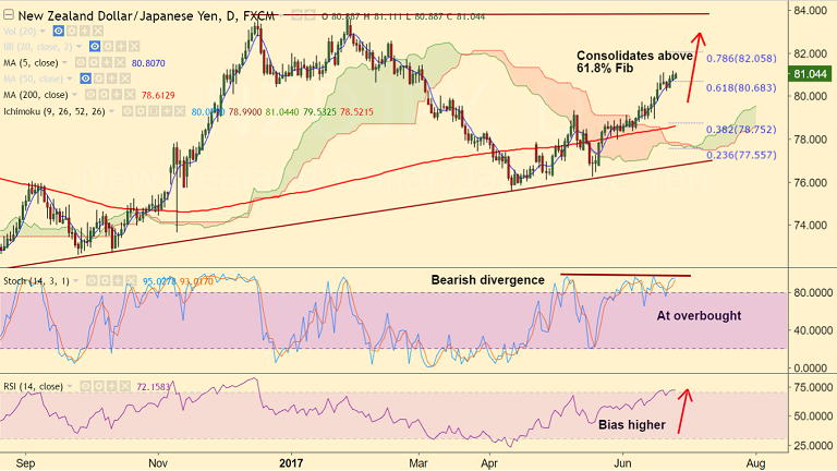 - NZD/JPY is extending grind higher, is consolidating above 61.8% Fib retrace of 83.809 to 75.626 fall.