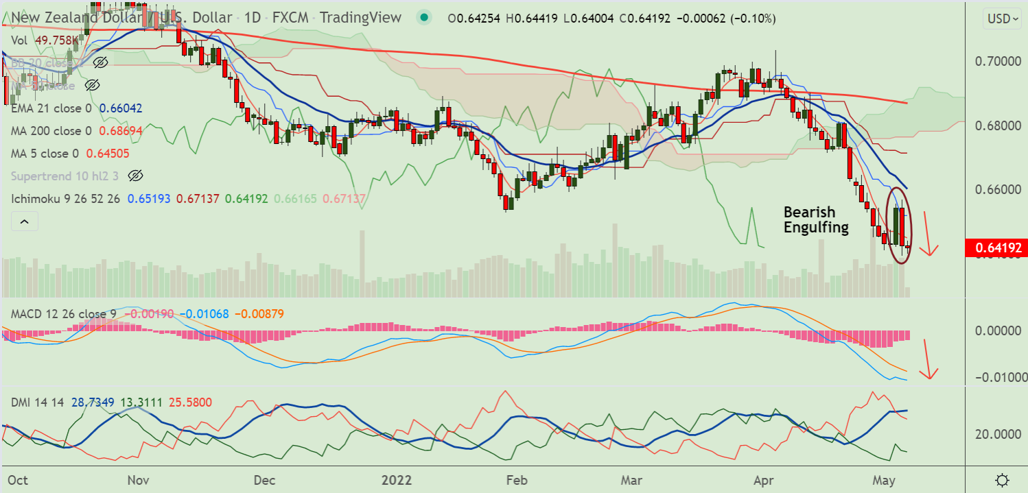 - NZD/USD has formed a 'Bearish Engulfing' pattern on the previous session's candle